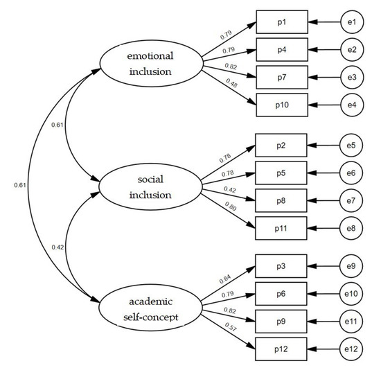 All three factors showed satisfactory levels of reliability (Cronbach’s alpha > 0.7). In the original version of the questionnaire, items 4 and 10 belonged to the ‘emotional inclusion’ factor. In the current version, item 4 belongs to ‘academic self-concept’ and item 10 to ‘social inclusion’.