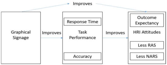 - Eimontaite, I.; Gwilt, I.; Cameron, D.; Aitken, J.M.; Rolph, J.; Mokaram, S.; Law, J. Language-Free Graphical Signage Improves Human Performance and Reduces Anxiety When Working Collaboratively with Robots. Int J. Adv. Manuf Technol 2019, 100, 55–73. [Google Scholar] [CrossRef] [Green Version]