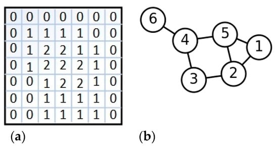 For standard matrix data, such as images, we can use the convolutional neural network (CNN) to extract their features. The data processed by CNN are in the form of a matrix, which is based on a matrix arranged by pixels. This form of data is called the Euclidean structure, as shown in Figure 1a. However, there are a lot of non-standard forms of data in our daily life, and the ‘topology structure’ (‘graph’) is one of them. Topological graphs in the computer field are different from images in the usual sense [22]. Topological graphs are generally composed of points and edges, which are collectively referred to as a ‘graph’. The ‘Graph’ diagram is as shown in Figure 1b. The numbers represent the points in the ‘graph’, and the lines connecting the points are the edges. For this type of data, it cannot be extracted with the convolutional neural network. Therefore, a graph convolutional network (GCN) is proposed.