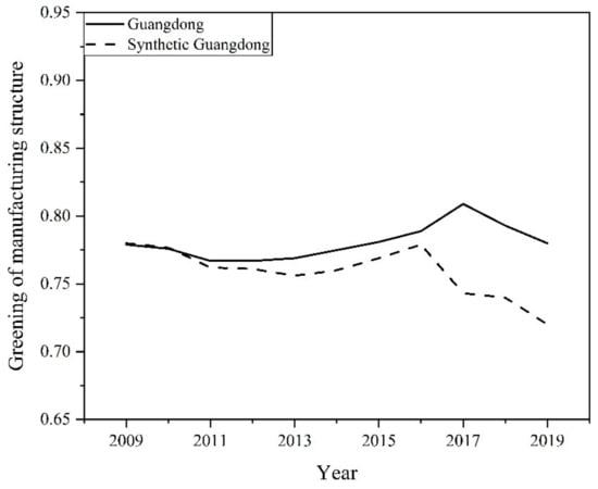 Greening effect of manufacturing structure in Guangdong and synthetic Guangdong.