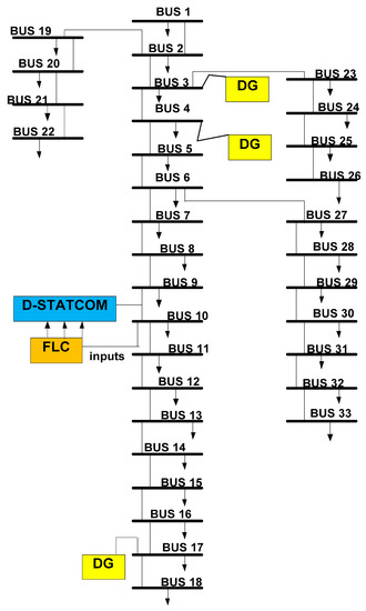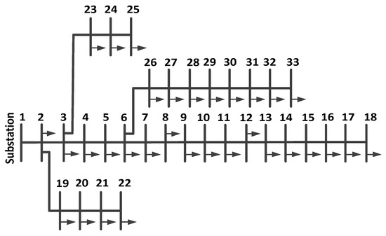The effectiveness of the proposed scheme using the conventional method is being tested initially on the standard IEEE 33 bus test system for CPLF and CILF [36,37]. The typical diagram of the IEEE 33 bus test system is shown in Figure 2 [37].