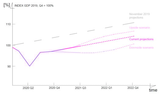 The T&L constitutes a bloodstream of the EU economy. It employs about 20 million people, that is 12% of the total number of jobs available in Europe [61]. As every branch of economy is linked to GDP, and regardless of the simulation type, the forecasts for the coming years are not the best (Figure 2). However, in terms of innovation, in most cases companies bear implementation costs themselves, which gives them some independence and autonomy. However, this autonomy may turn out to be only an illusion, because the general economic downturn means a reduction of companies’ profits and consequently investment resources. In addition, all innovations and R&D works show a very close dependence on state support, which is currently focused on the medical industry.