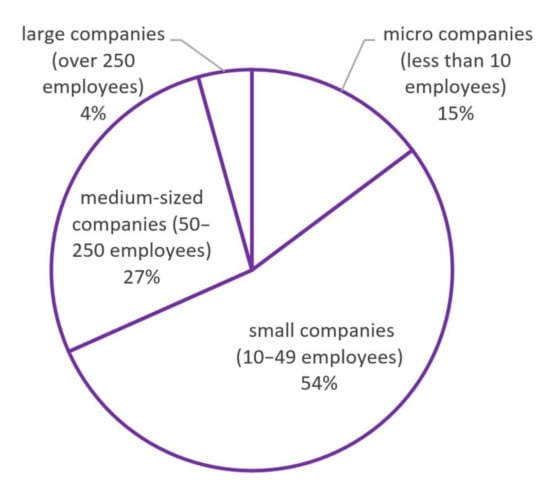 The data presented in some graphs or diagrams may not add up to 100% due to the assumed rounding of values or the possibility of giving more than one answer. The authors adopted the company’s country of origin and its size measured by the number of employees as descriptive variables.