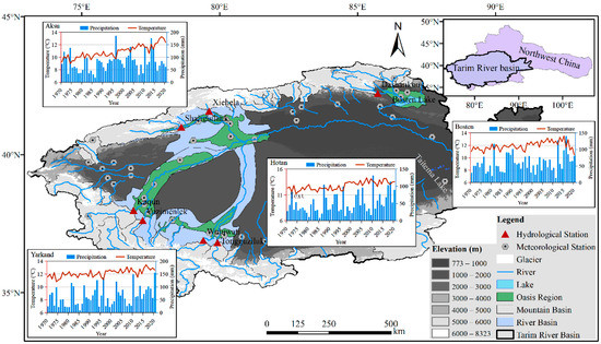 - Zhou, X.; Lei, W. Hydrological interactions between oases and water vapor transportation in the Tarim Basin, northwestern China. Sci. Rep. 2018, 8, 13431. [Google Scholar] [CrossRef] [PubMed]
