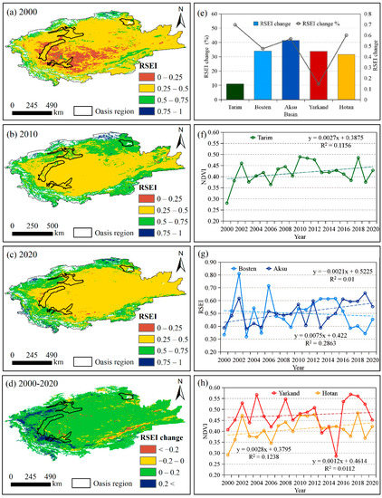 - Gao, P.; Kasimu, A.; Zhao, Y.; Lin, B.; Chai, J.; Ruzi, T.; Zhao, H. Evaluation of the Temporal and Spatial Changes of Ecological Quality in the Hami Oasis Based on RSEI. Sustainability 2020, 12, 7716. [Google Scholar] [CrossRef]