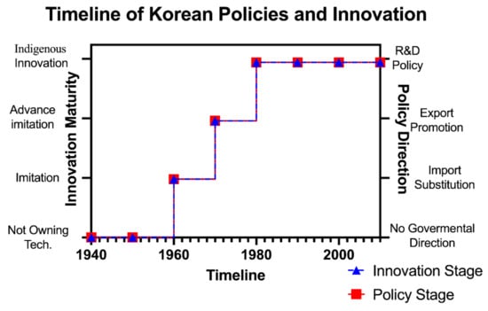 However, in this article, we have proposed a new timeline for South Korea’s technological development based on the responses of the governmental policy to the imitation and innovation stages. We have used a different division that intersects and overlaps with the aforementioned ones, but with the underlying rationale of a nation that did not possess certain technologies and thus depended on its ability to copy, imitate, and simulate the innovations of other countries and then develop modern innovations of its own.