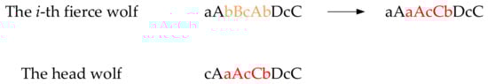 The detective wolf can advance in h directions by randomly selecting h gene positions in all chromosomes of the individual detective wolf. The step length is set as two. In other words, each time detective wolves wander a single step forward, the number of genes that are exchanged between each side of the selected gene position is increased by one.