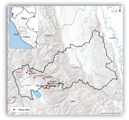 - Callupe, F.; Turco, J. Caracterizacion del Departamento de Pasco; Banco Central de Reserva del Perú: Huancayo, Perú, 2021. [Google Scholar]