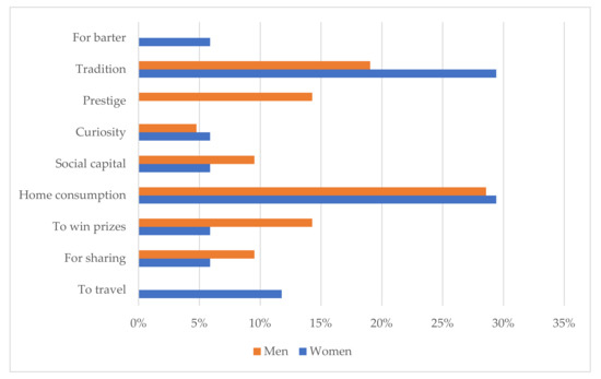 - Social capital: Contact with professionals from the private or public sectors resulting from in situ conservation may help farmers sell their native potatoes or obtain support for participation in events or projects related to agrobiodiversity management. Men were more likely than women to mention this motivation.