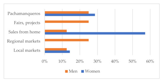 - Sarapura, S.; Hambly Odame, H.; Thiele, G. Gender and Innovation in Peru’s Native Potato Market Chains. In Transforming Gender and Food Security in the Global South; Njuki, J., Parkings, J.R., Kaler, A., Eds.; Routledge: Oxon, UK; New York, NY, USA; International Development Research Centre (IDRC): Ottawa, Canada, 2016; pp. 160–185. [Google Scholar]