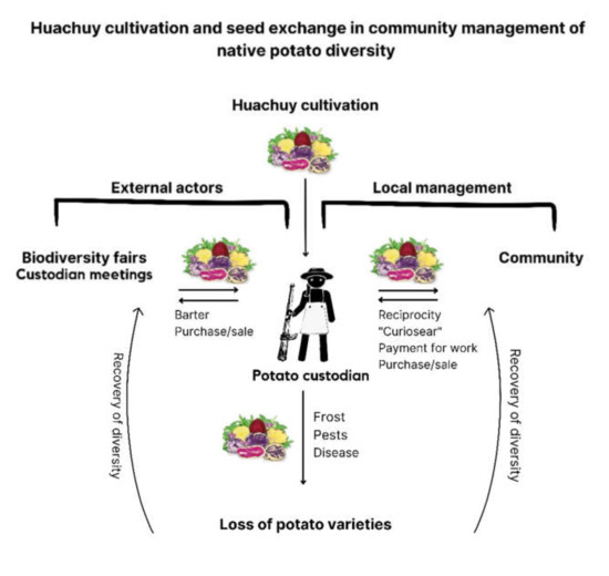 - Sociedad Peruana de Derecho Ambiental (SPDA). The Association of Potato Biodiversity Guardians from Central Perú: A New Model of Self-organization for Benefit Sharing. Available online: https://spda.org.pe/wp-content/uploads/2018/09/DIPTICO-AGUAPAN-INGLES.pdf (accessed on 7 February 2022).