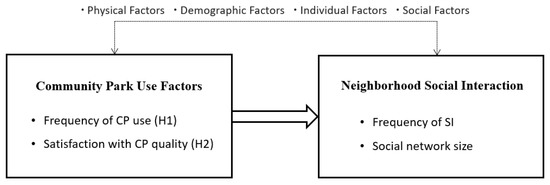 Conceptual framework of community park use and social interaction. Note. CP = community park; SI = social interaction.