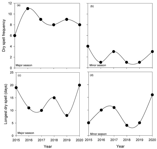 - Usman, M.T.; Reason, C.J.C. Dry spell frequencies and their variability over Southern Africa. Clim. Res. 2004, 26, 199–211. [Google Scholar] [CrossRef] [Green Version]