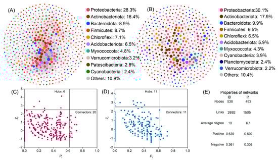 - Deng, Y.; Jiang, Y.-H.; Yang, Y.; He, Z.; Luo, F.; Zhou, J. Molecular ecological network analyses. BMC Bioinform. 2012, 13, 113. [Google Scholar] [CrossRef] [PubMed] [Green Version]