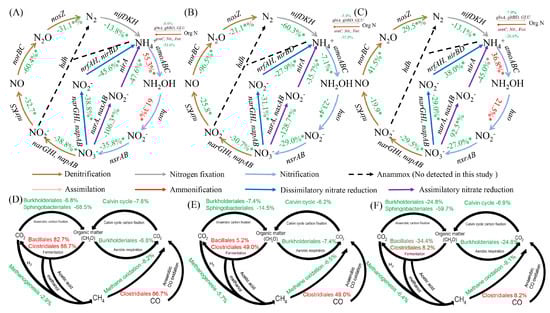 - Kelly, C.N.; Schwaner, G.W.; Cumming, J.R.; Driscoll, T.P. Metagenomic reconstruction of nitrogen and carbon cycling pathways in forest soil: Influence of different hardwood tree species. Soil Biol. Biochem. 2021, 156, 108226. [Google Scholar] [CrossRef]