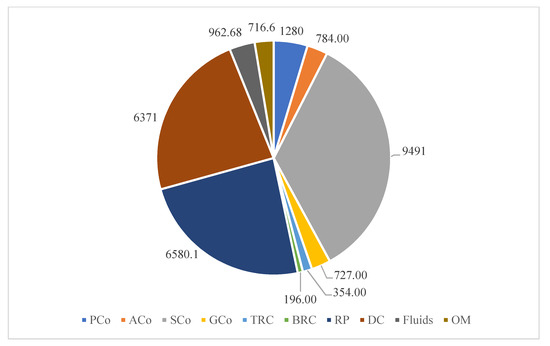 The average weight and material composition of each type of ELV are listed in Table 1. All weights in kilograms were converted to metric ton (tonne) when performing the model calculations. calculations. The distances in the proposed EIP-4-ELVs case study in Qatar are shown in Table 2. The processing facilities’ (PCo, ACo, SCo, GCo, TRC, and BARC) distances are real data from Google Map coordinates. Other entities in the network were estimated/approximated locations by the author using Google Map coordinates.