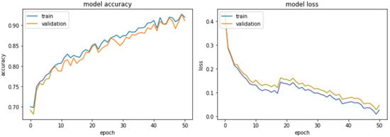 Finally, Figure 16 shows the experimental results of the model proposed in this paper. The experimental results of the proposed model show that the accuracy and loss have been improved and the graph has stabilized.