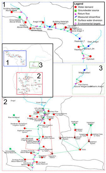 Water priority demands were inputted to reflect the current Georgian water policies [7] (GWP, personal communication, 3 May 2017) in place and are as follows: Urban and Domestic, Hydropower, Environmental/Sanitary, the Zhinvali Reservoir, the Bodorna Reservoir, Agriculture, and other, ranging from highest priority to lowest, respectively.