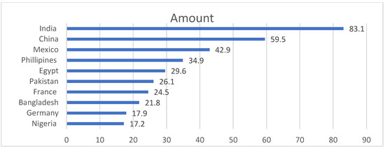 Remittances from migrants to their countries of origin—which amounted to USD 401 billion in 2012 and are expanding rapidly—are critical for lowering the magnitude and severity of poverty in the developing world (see Figure 1). Apart from monetary advantages, remittances have improved human development outcomes in various categories, including health, education, and gender equality. This money provides a lifeline to the needy, raising individual and family income. Research on the impact of remittances in certain situations demonstrates that they positively influence school dropout rates and average birth weights of children born to remittance-receiving households. Over the past decades, remittances have emerged as critical sources of economic progress through mitigating poverty and inequality, thriving financial development, financial inclusion, the accumulation of domestic capital formation, and trade expansion, especially in developing economies. Evidence indicates that remittances positively affect welfare and growth and may contribute to economic growth, especially via their beneficial effect on consumption, savings, and investment [8]. Previous studies indicate that remittances reduce poverty levels, promote access to finance [9], increase household consumption [10], and reduce inequalities in income distribution [11]. Many empirical studies have been conducted on the effect of remittances on economic development and growth in developing countries. The aggregate, long-term influence of remittances on economic growth is conceptually difficult, even though short-run multiplier effects and the favorable impact of remittances on the welfare of recipient families are acknowledged. The empirical evidence on this topic is inconclusive. One of the mechanisms via which remittances are predicted to impact long-term economic development is domestic capital creation, which may be influenced by various factors such as an induced increase in savings and the alleviation of financial restrictions.