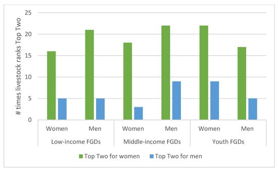 Half (73) the 146 low-income FGDs which conducted the Ladder of Life exercise (see Section 3) reported livestock opportunities to be one of the pathways by which local women and men have contributed to moving their households out of poverty. These narratives on livestock-related upward mobility contain 30% more text passages referencing women who employed livestock-related initiatives compared to men.