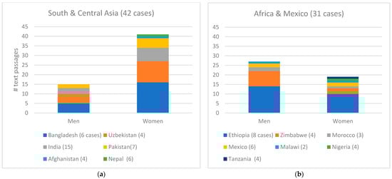 Figure 3 shows that it is cases from South Asia, Uzbekistan, and Ethiopia where FGDs most often refer to livestock activities when identifying strategies that local women have used to help move their households out of poverty. In cases from Ethiopia and Zimbabwe, men emerge as more likely than women to employ livestock opportunities, although women are often referenced in Ethiopia.