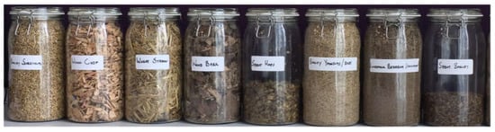 Eight different agriculture waste feedstock samples were collected from Scottish Farms (Cragnathrow, Kinkell, and Foulis), as shown in Figure 3. The corresponding ultimate and proximate analyses of these feedstocks, performed at SGS United Kingdom Limited [31], are presented in Figure 4.