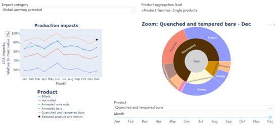 Concerning visualization techniques, literature studies proposed cluster heat maps [46], 3D visualizations to simplify the huge amount of data associated with LCI and to identify potential environmental hot-spots already in the design phase [50] and dashboards, to convey Life Cycle Sustainability Assessment results to decision-makers [51]. The latter study outlined the need to use a graphical presentation using chromatic scales and ranking scores, to provide a straightforward but comprehensive communication of disaggregated results. Finally, dashboards were also used for Organizational LCA [52,53].