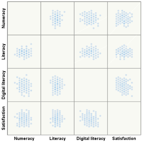 In the analysis of correlations between satisfaction with education and study variables of the elementary students who participated in the blockchain education program, a significant negative correlation with the post-survey finding of digital literacy was found (Figure 5). The Pearson correlation between satisfaction with education and digital literacy was −0.219 with a significance level at p = 0.000.