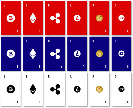 | Rules | Two sets of 18 cards in total, including six white, blue, and red cards, respectively, are needed. The cards are painted in respective colors on one side; and six different cryptocurrency symbols are printed on the other side. Logos of cryptocurrencies used in reality are used to stimulate the interest of learners and allow them to experience the real use of blockchain indirectly. | |