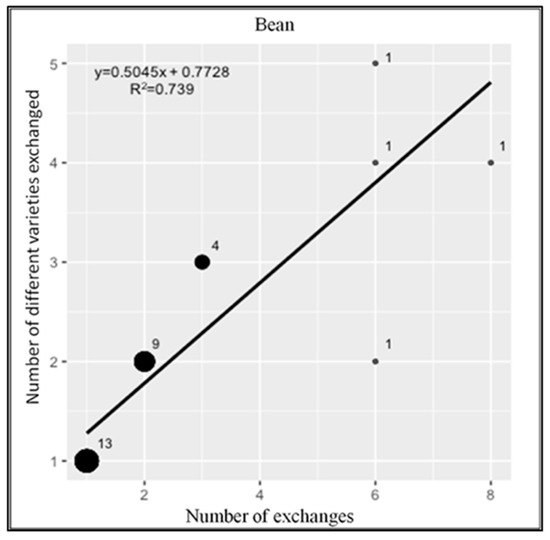 As with maize, the greater the number of bean seed exchanges carried out among farmers, the greater the number of varieties exchanged (Figure 6).