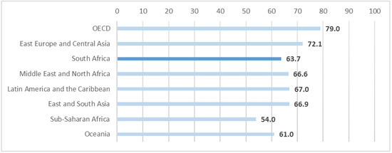 With the efforts of South African organizations at CSR thus far, South Africa is the top performer on the African continent with an overall CSR index of 55 out of 100 [43]. By comparison, the top-performing country in Europe, Latvia, has 64. South Africa was also ranked at 106 of the 165 countries rated on the 17 sustainable development goals [44]. Figure 1 below shows that South Africa has an SDG Index score of 63.7 out of 100 based on all 17 SDGs. The low SDG Index scores in low-income countries have been attributed to putting less effort on environmental aspects, ending extreme poverty, and providing access to essential services and infrastructure.