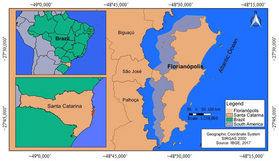 - IBGE, Instituto Brasileiro de Geografia e Estatística. IBGE|Cidades@|SantaCatarina|Florianópolis|Panorama. Available online: https://cidades.ibge.gov.br/brasil/sc/florianopolis/panorama (accessed on 17 January 2022).