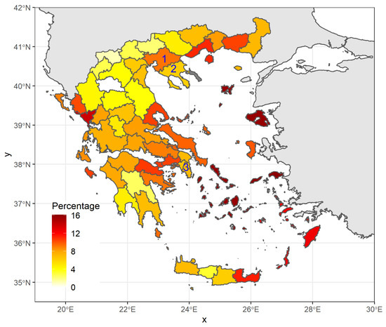 - Hellenic Statistical Authority. 2001 Population and Housing Census; Hellenic Statistical Authority: Athens, Greece, 2004. [Google Scholar]