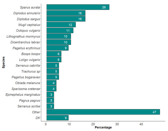 Reported caught species (% share of catches in weight) in Greece, for the study period (DK: Don’t Know).