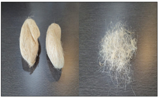 PA fibre, which has high specific stiffness and strength, was used in this analysis. The PA fibre was bought from a local factory. The PA fibre was in a totally dry condition. It was kept at room temperature to control and maintain the same conditions and properties of the fibre. The diameter was in the range of 0.6–0.8 mm. It was approximately 1 foot long. For this study, the 1-foot-long samples of PA were each cut into 1.0–1.5 cm long pieces of fibre hair. Figure 3 shows the pineapple fibre that was used in this experiment. The percentage of PA fibre was selected based on the engineering properties of the soil. The soil with 0.75% PA showed a positive effect in its engineering properties based on the study of [12].