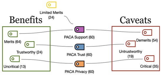Overall, we coded three categories with seven subcategories and assigned 410 text segments to the code system. The first category PACA Support is divided into three subcategories: Merits elaborate on advantages of the PACA support in mental health care, Demerits illustrate the concerns the participants had with a PACA in this specific context, and Limited Merits, includes all the statements of those respondents who found the support of a PACA only partially helpful. The second category PACA Trust includes statements about the extent to which participants would trust a PACA and whether they would build a relationship over a longer period with the CA. The two codes that were derived for this category were Trustworthy and Untrustworthy. The third and final category, PACA Privacy, was specifically about data privacy and whether the participants would allow access to their data in order for the CA to be personality adaptive. Its two subcategories are called Uncritical and Critical. Figure 1 provides an overview of the categories and their subcategories.