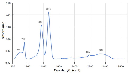 Organometallic species at the sample surfaces were identified with Fourier transform infrared spectroscopy (FTIR) using a Perkin-Elmer Spectrum Two™ spectrometer (Perkin-Elmer, Llantrisant, UK) with a spectrum area of 4000–450 cm−1 and a resolution of 4 cm−1. The FTIR spectra were interpreted using the spectral analysis function (software KnowItAll Informatics System 2020, John Wiley Sons, Inc., Hoboken, NJ, USA).