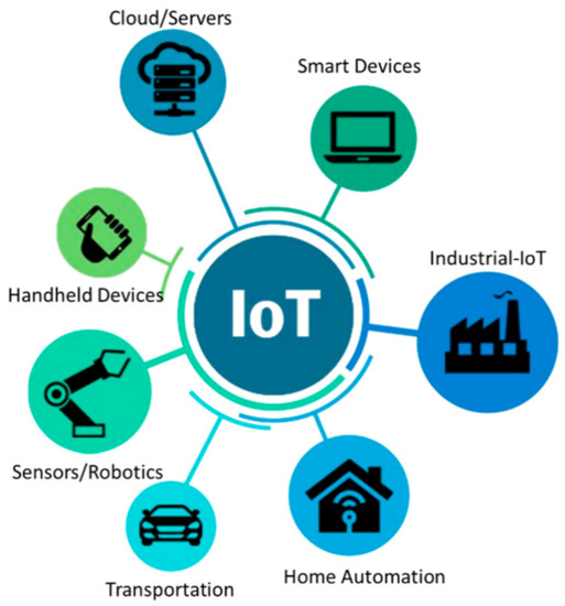 The growing blockchain technology has a long way to go in terms of other technologies, such as artificial intelligence, machine learning, the IoT, and the data sciences. In the past few years, an escalation in the research, discussions, and projects with regard to the IoT has gained the attention of practitioners. The implementation of the IoT and the particular subdomains is being applied in the different industrial sectors mentioned in Figure 1. The concept of the IoT is based on connecting things that deliver radical change to the network model of trust between the nodes or devices to solve the pain points of the human–machine or M2M interfaces. The traditional operations rely heavily on the recording of manual data to promote trust among the nodes. However, the manual processes often lead to victimization in the forms of suspicious attacks and intentional modifications. The evolution of the IoT and its extensive applications require a rethinking of the design and architecture.