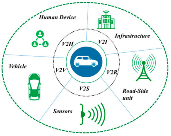 Cellular, or GSM/LTE/5G, technologies will make the above types of communication more reliable in the context of future research with regard to intelligent transportation. The blockchain-enabled reputation model is significant among the communication models. In reputation-enabled models, the provider reputation is validated before the storing of its data in the blockchain network [22]. The abovementioned composite communication types are also called “vehicle-to-everything (V2X)” communication.