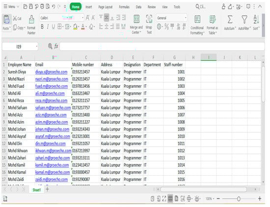 RPA instructs to find and open excel data referring to the excel sheet name as shown in Figure 10. Next, bots extract all of the information and updates to the HRMS based on the Staff number references. RPA instructs to find employee staff numbers to update records. Figure 10 shows the record updates. RPA instructs to find and open excel data referring to the excel sheet name as shown in Figure 10. Next, bots extract all information and updates to the HRMS based on the Staff number references. RPA instructs to find employee staff numbers to update records. Figure 10 shows the record updates.
