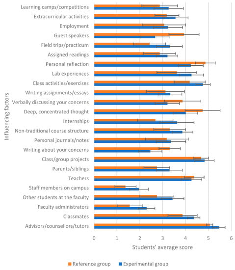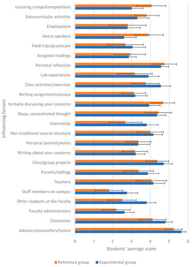 Before students started with the sustainable architecture design studio, we surveyed their perception of the different influencing factors they had during the first semester in the design studio. This insight might help course designers adjust some tasks and TL for effectively achieving learning outcomes. Students’ mean scores on the subscale items were contrasted using Kruskal–Wallis, as shown in Figure 1.
