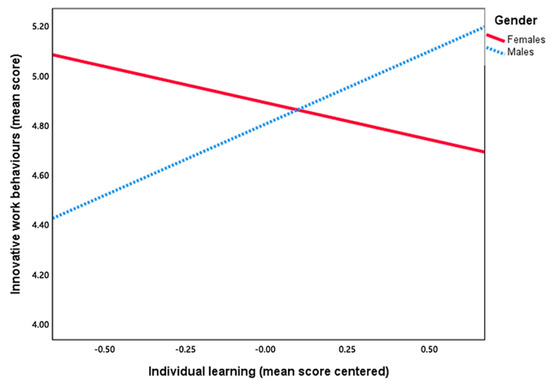 The association between individual learning and innovative work behaviours is moderated by gender such that the positive association is stronger among men.