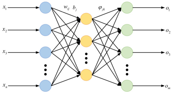 Since in the control law (19) is unknown, the precision of the control depends on the precision of parameter identification. Neural networks can realize the adaptive approximation of unknown parts. Motivated by this construction, the extreme learning machine method is introduced in this paper. Extreme learning machine can maintain fast learning ability while maintaining good generalization performance. For a deeper discussion of the ELM, we refer the reader to [44,45]. The schematic diagram of the ELM neural network is shown in Figure 3.