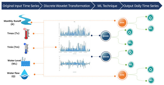 - Zakhrouf, M.; Bouchelkia, H.; Stamboul, M.; Kim, S.; Heddam, S. Time Series Forecasting of River Flow Using an Integrated Approach of Wavelet Multi-Resolution Analysis and Evolutionary Data-Driven Models. A Case Study: Sebaou River (Algeria). Phys. Geogr. 2018, 39, 506–522. [Google Scholar] [CrossRef]