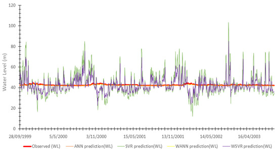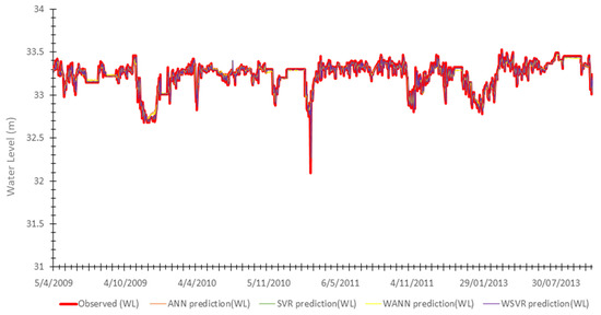 | Daily average water level (mm) | Training | 45.471 | 0.004 | 0.372 | 0.138 | 45.140 | 45.398 | 45.716 | 0.576 | 45.450 | 44.923 | 47.124 | 2.201 | 0.786 | −0.015 | 0.002 | 7697 | |