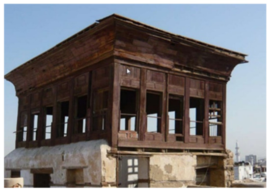 The size of the windcatcher depends on the outside air temperature. If the temperature at the entrance to the outlet is low, then the area of its horizontal section should be large. When the temperature is higher than the maximum comfort of the thermal perimeter, the area of its horizontal section should be small when the air inside is cooled by using a wet or wet sheet of charcoal placed between two metal grid plates. The air flowing over a water element like the fountain can be directed to increase its moisture content [4]. The historical district of Jeddah is known for buildings decorated with ornaments and inscriptions famous for Islamic architectural style, besides the Hijazi heritage, especially the main entrances of these buildings designed in the wooden style and beautiful woods form shapes that cover these entrances and most parts of the buildings from the outside, making them the focus of researchers in the field of Arabic and Islamic architecture (Figure 1) [5].