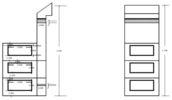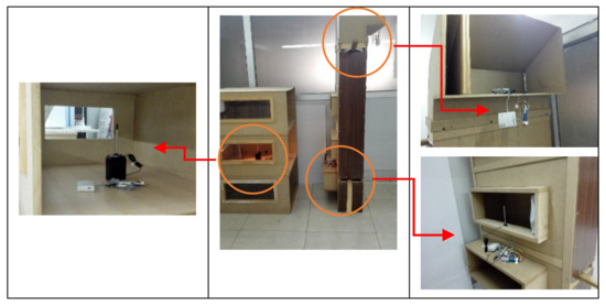Using 3D modeling and model validation shows techniques of building models in Design Builder and confirms the accuracy of the models through building a scale model (Scale 1:6) of the windcatcher with three attached floors of spaces. Comparing the findings produced from the numerical and physical model validates their accuracy. A total of three Hobo data loggers equipped with velocity sensors (T-DCI-F900-L-P) are installed, each in a different position. The positions at which the data loggers are placed are the entrance, exit, and middle of the windcatcher. In order to validate the numerical code, the inlet, outlet, and space windows are designed to have several dimensions to examine various scenarios (Figure 6).