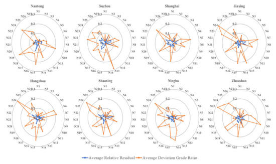 The radar diagram of average relative residual and deviation grade ratio of each indicator.