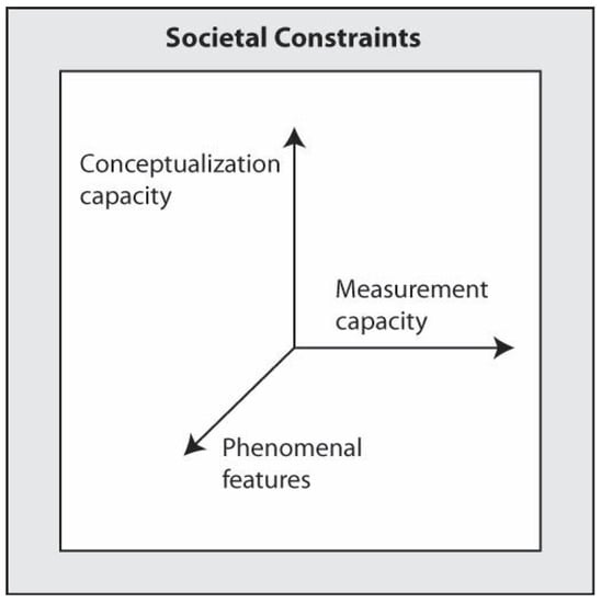 The two capacities describe how improving technology, financial resources and people’s skills (or ‘Human Capital’) can reduce uncertainty by constructing present knowledge about the phenomenon. The smaller the two capacities are, the larger the associated difficulties in conceptualization and measurement are likely to be.