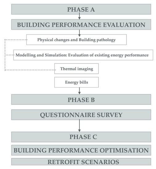 This section presents the research methodology by explaining the overall aims and approach of the research, including a brief explanation of the main data collection and modelling set-input parameters of the prototype retrofit housing model. It also explains selection criteria for selected prototypes of RTBs. A combination of quantitative research methods; on-site observations, thermal imaging, modelling and simulations, and a questionnaire in parallel with in-situ measurements are all contained within this underlying approach.